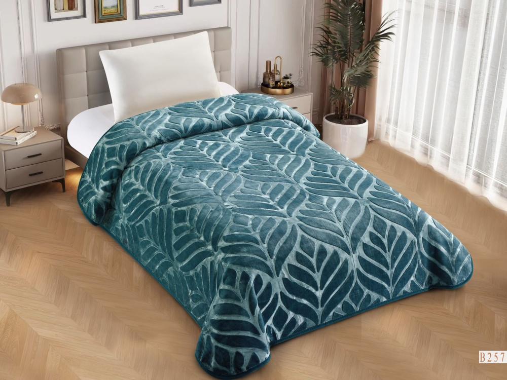 بطانية ميلاء جاكار محفوره لون أزرق شتوي مفرد