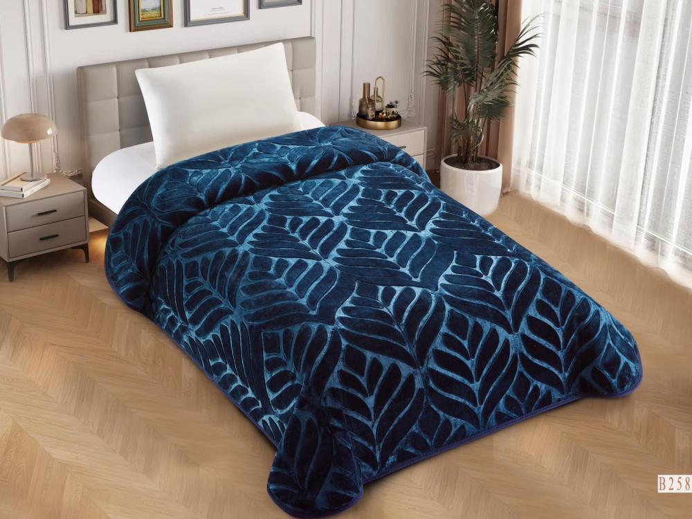 بطانية ميلاء جاكار محفوره لون كحلي شتوي مفرد