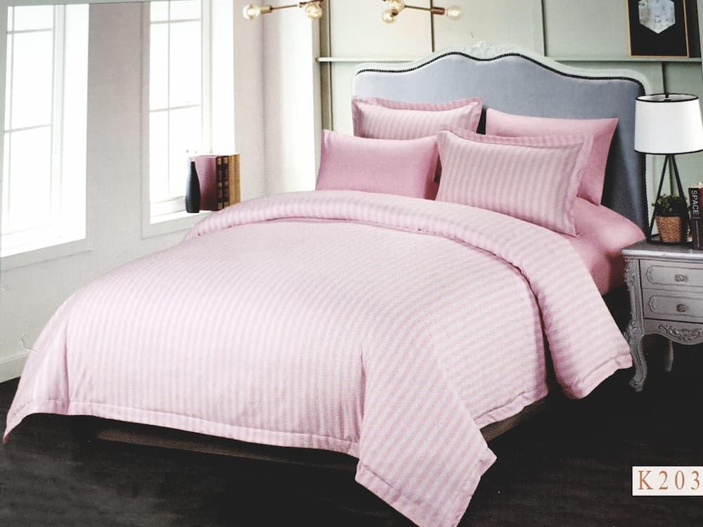 بيت لحاف فندقي مقلم لون وردي صيفي مفرد ونصف