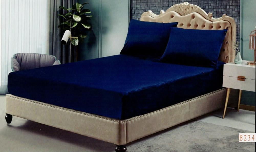 شرشف مطاط هوم مخمل لون كحلي شتوي مفرد ونصف 30+200*cm 150