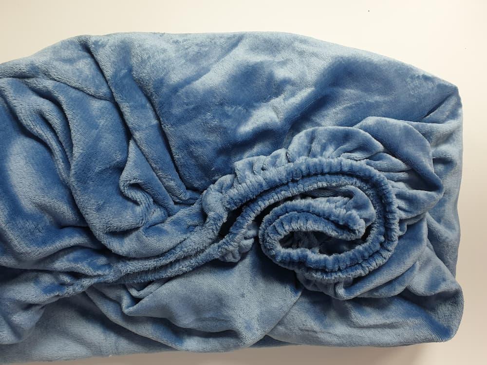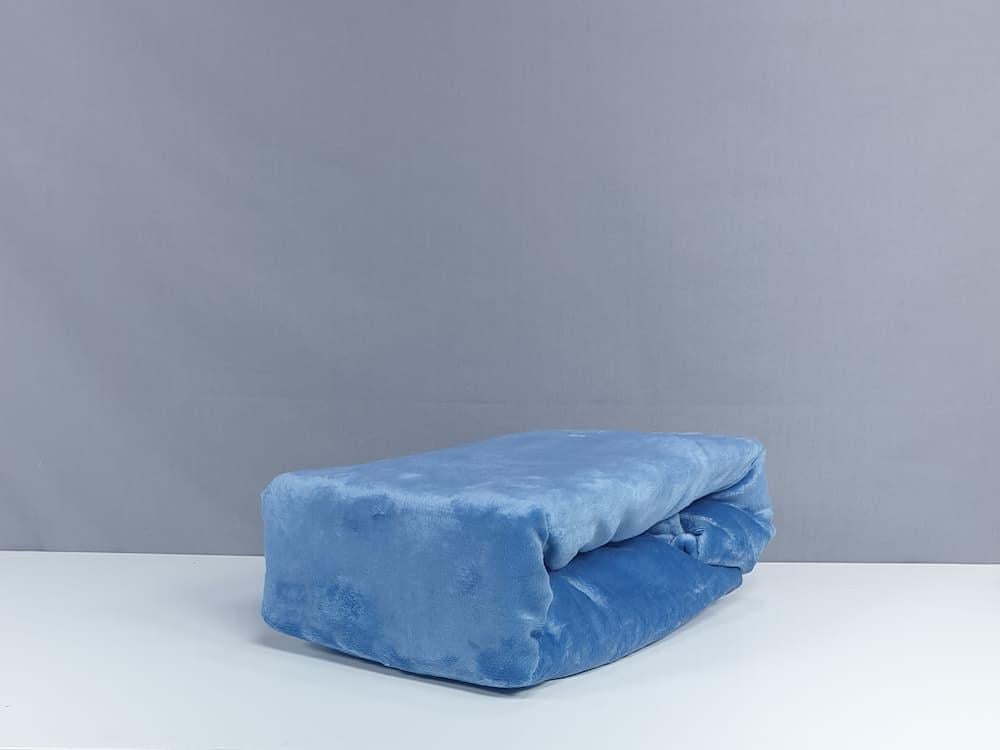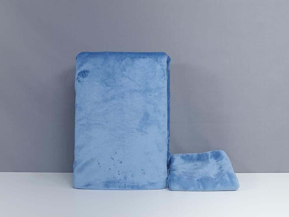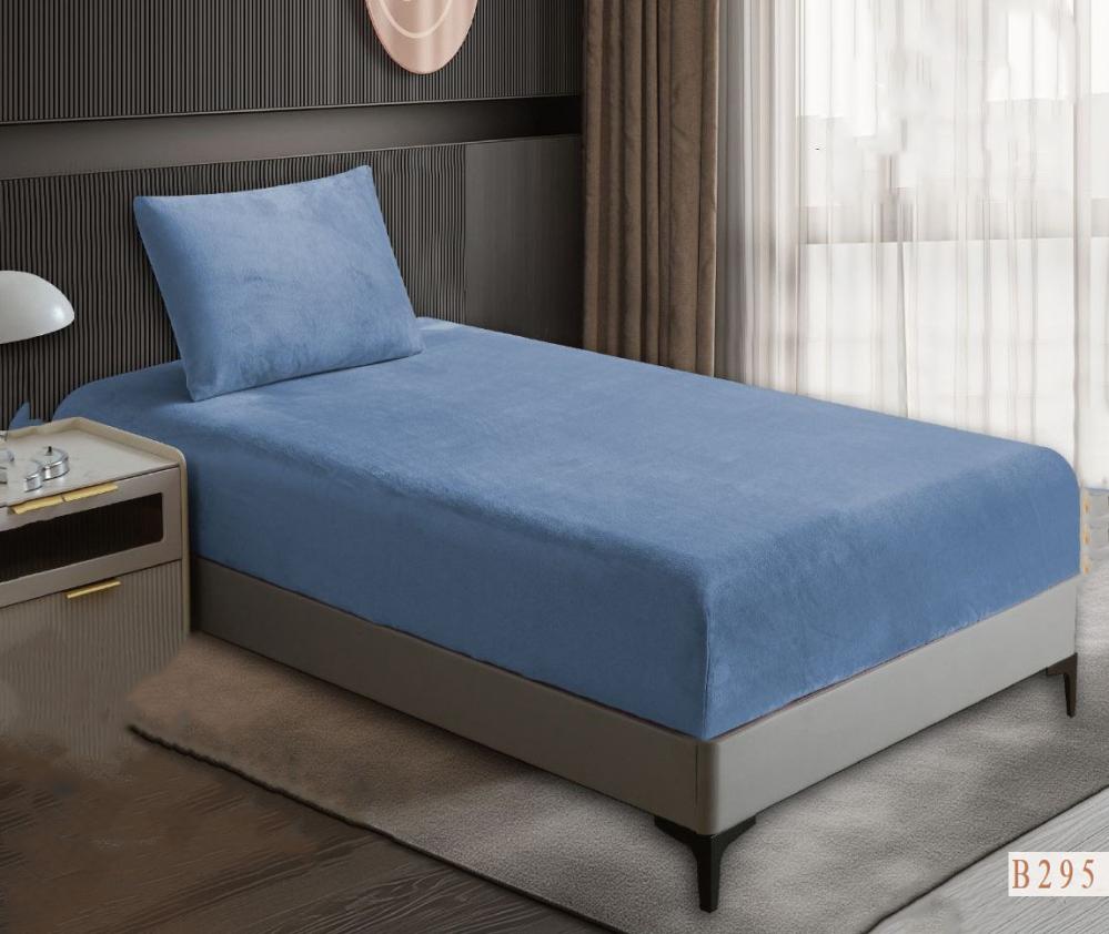 طقم شرشف مطاط مخمل 2 قطع لون أزرق مفرد ونصف