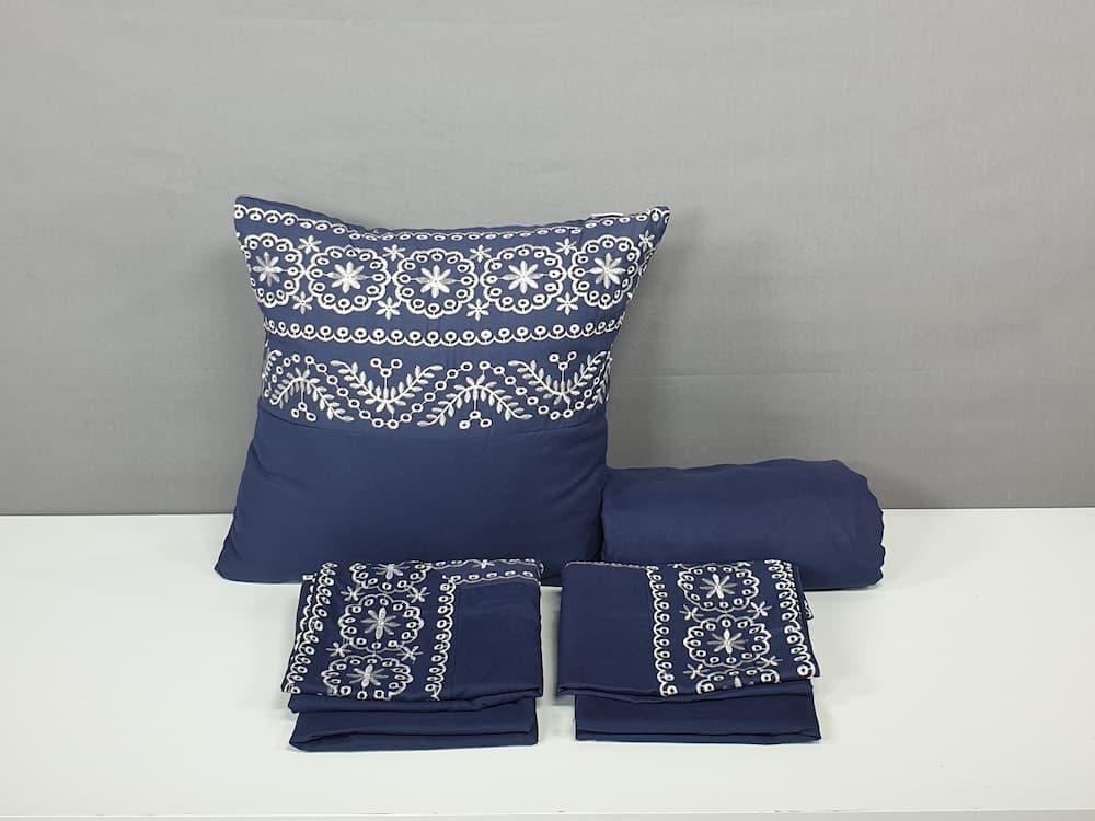 مفرش ايسل كحلي مطرز  7 قطع صيفي مزدوج