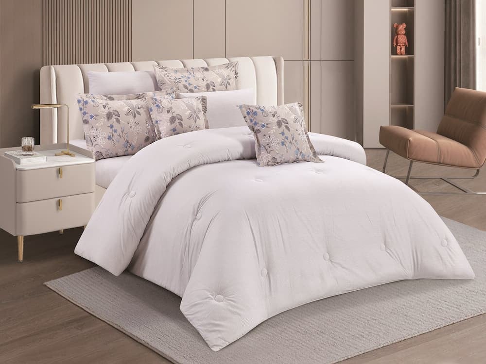 مفرش لوسين قطن 100% مفرد ونصف مصمم بمظهر من التشجير الحديث ، يضيف نمط مميز وفاخر على غرفة نومك أحد أهم الأشياء التي نحتاجها في الصيف لزيادة تدفق الهواء داخل المفرش ويكون قابل للتنفس بدرجة عالية، يتميز بأنة عالم ثاني من الراحة والبرودة، مستوحى من التصاميم الفاخرة. مناسب لفصل الصيف، مكون من 5 قطع قطنية متوفر بعدة ألوان يعطي اختلافات رائعة ويعطي للسرير مظهراً مميزاً وبريقاً لامعاً يجمع لك بين الفخامة وجمال التصميم، اضافة رائعة لمفروشات غرفة نومك ليكون أختيارك الأمثل يقدم من مفارش رياشن.