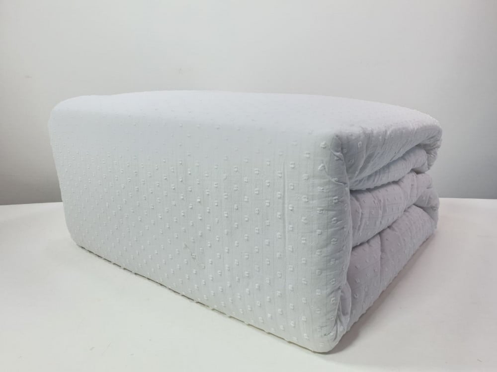 مفرش كلاسيك من أفخم المفارش الحديثة ، وهو مفرش مميز بخامة منقوشة منقط من ذات اللون من القطن الطبيعي 100% وبقطع متكاملة من لحاف وأغطية مخدات وشرشف مطاط ومخدات ديكور صغيرة .