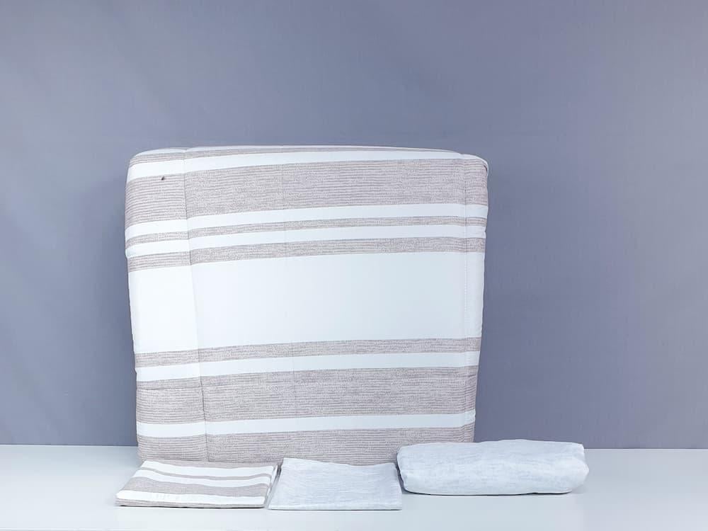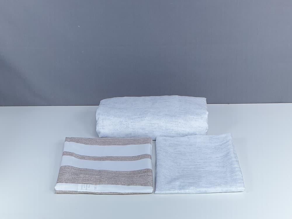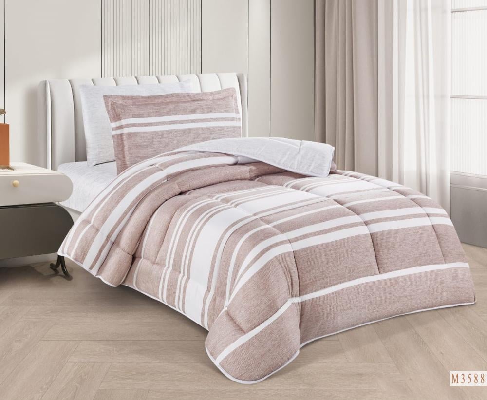 لأصحاب الذوق الراقي نقدم لكم مفرش من طراز رفيع و طابع كلاسيكي. حيث يعد مفرش مقلم صيفي بيج هو المفرش المثالي لإطلالة فريدة لغرفتك. يتميز المفرش بتصميم فاخر وألوان مبهجة لتناسب أجواء الصيف، كما يمنحك إحساس عميق بالنعومة والاسترخاء بفضل خامته ذات الجودة العالية، مما يجعله خيارك المثالي للراحة وال