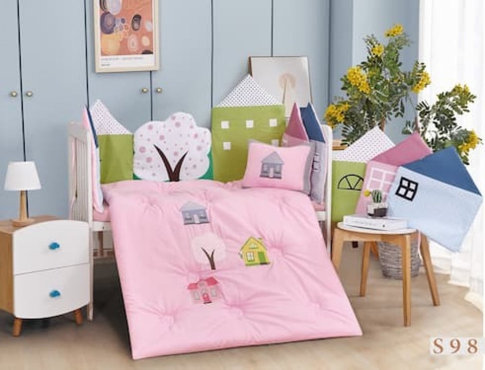 مفرش مواليد بحواجز سهلة التركيب مزوده بأربطة ليكون اكثر إحكاماً تتميز حواجز السرير بأنها مريحة وناعمة وتحيط بكل جوانب السرير، لتحمي رأس طفلك يأتي معه مخدات طفوليه في جذب انتباه طفلك ، يمنح الطفل نوماً مريحاً وناعم من الجهتين يأتي أكثر نعومة من أي نسيج لأنه من أجود الخامات الناعمة ويتناسب مع جميع الاذواق والغرف والمناسبات يوفر الراحة لأطفالك عند النوم ناعم الملمس فاخر يأتي بتصاميم عصرية محكم الحواف يأتي بتصميم رائع وفريد ، يتميز بحماية 360 درجة وقابل للطي والتخزين في خزانة ملابسك لأنه يتميز بأنه خفيف الوزن ولا يسبب الحساسية لبشرة الطفل الحساسة يتميز هذا المفرش ببطانة داخلية توفر الراحة اللازمة لأطفالك وهي مكونة من ألياف دقيقة ناعمة ولطيفة للغاية على الجلد يقدم من مفارش رياشن .