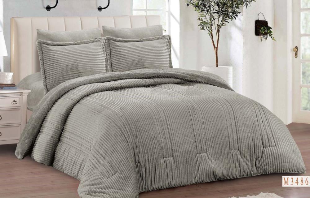 مفرش هتان مخمل فرو لون رمادي شتوي مزدوج