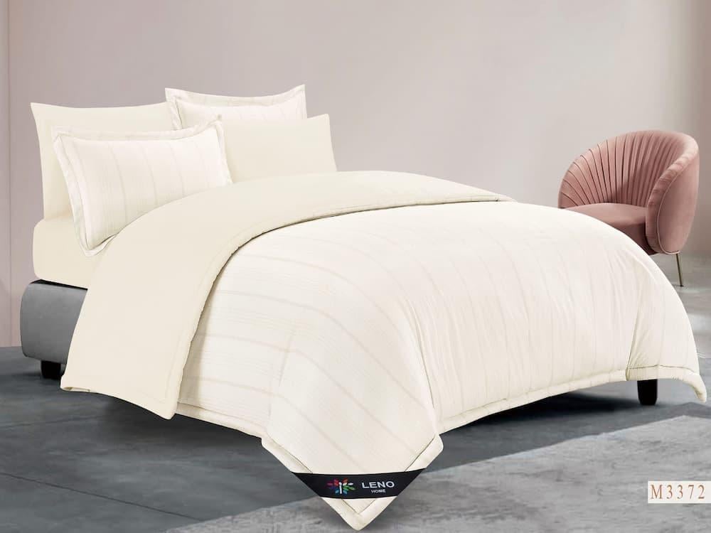 مفرش هوتيل فندقي مقلم لون سكري حليبي صيفي مزدوج