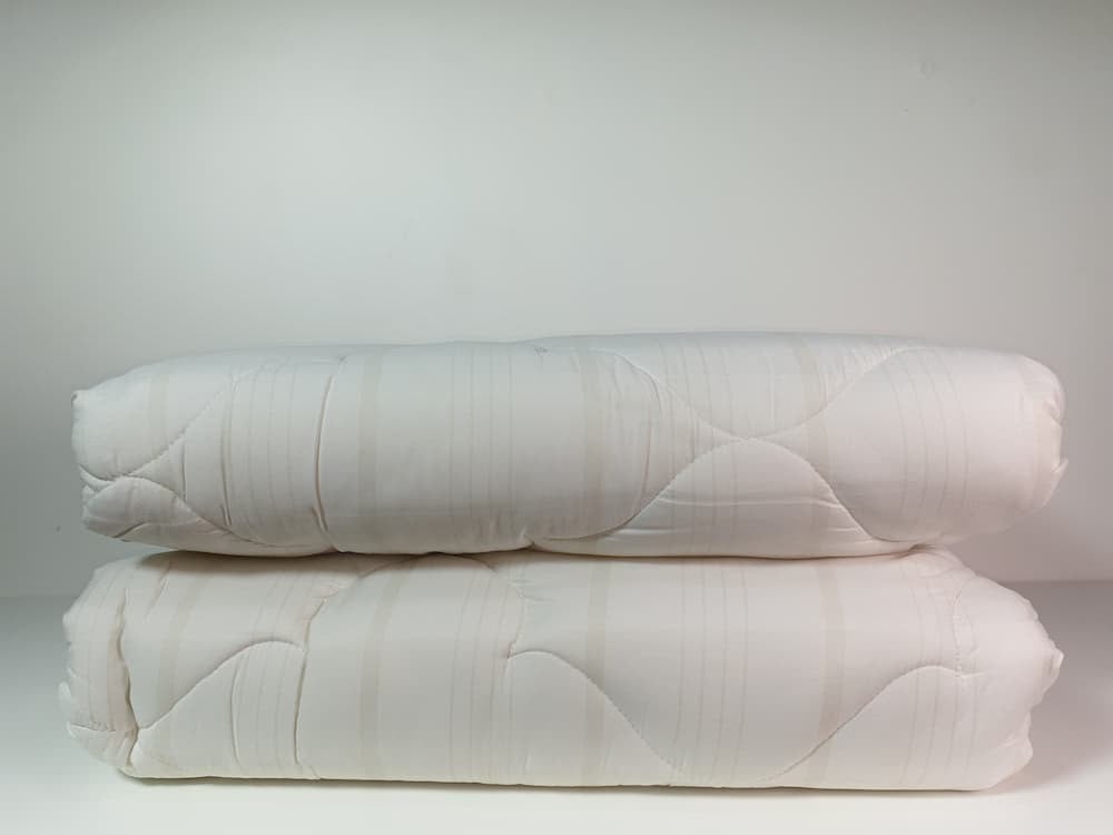 مفرش هوتيل بطابع فندقي راقي وفاخر وذا ملمس ناعم مقلم بخطوط طولية رقيقة .
